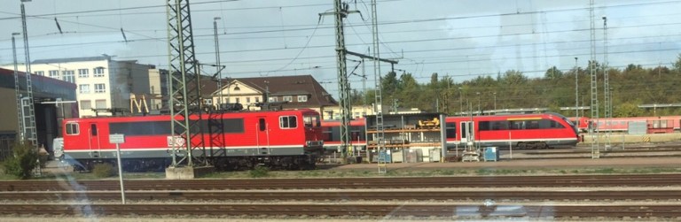 Irgendwann nach Erfurt habe ich den Drang mich zu bewegen. Die 2. Klasse ist restlos überfüllt, das Flanieren macht so keinen Spass. Also lasse ich mich an einem freien Tisch im Speiseabteil nieder und bestelle ein alkoholfreies Weizenbier, sowie das Aktionsmenü „Frikadelle mit Pilzrahmsosse und Kartoffeln. Das mundet mir! Schon vor Nürnberg bin ich wieder zurück an meinem reservierten Sitzplatz.