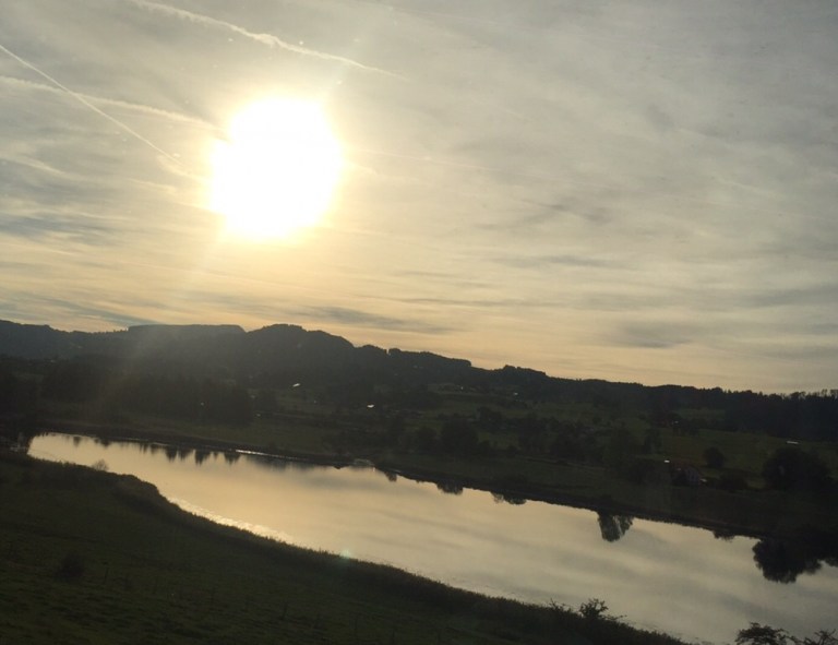 Ich geniesse die Reise durchs Allgäu sehr. Bald schon sind die Berge sichtbar, enorm klar und hoch, es muss wohl der Föhn blasen.