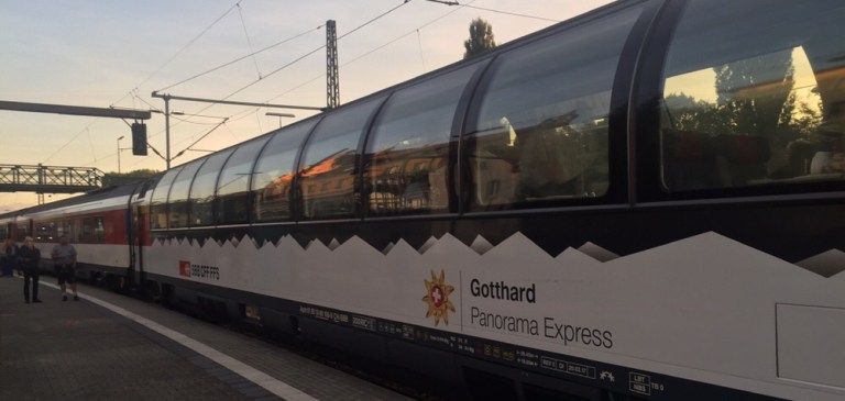 Der EuroCity nach Zürich steht schon früh auf Gleis 23 zu Abfahrt bereit. Ich steige ein, da ich bemerkt habe, dass mir trotz gegenteiliger Bekanntgabe nicht im Panoramawagen reserviert worden ist. Habe Glück, ich setze mich ins letzte 4-er Abteil ohne Reservationszettel. Eine Minute vor Abfahrt kommt eine ältere Dame und sagt sie hätte diese Sitzplätze reserviert. Henusode, ich mache Platz. Die Dame will mir aber unbedingt ihre Reservationen zeigen, mir beweisen dass Sie die Sitzplätze gebucht habe und bemerkt dann prompt, dass ihre Sitzplätze 4 Reihen weiter weg liegen. Glück gehabt!