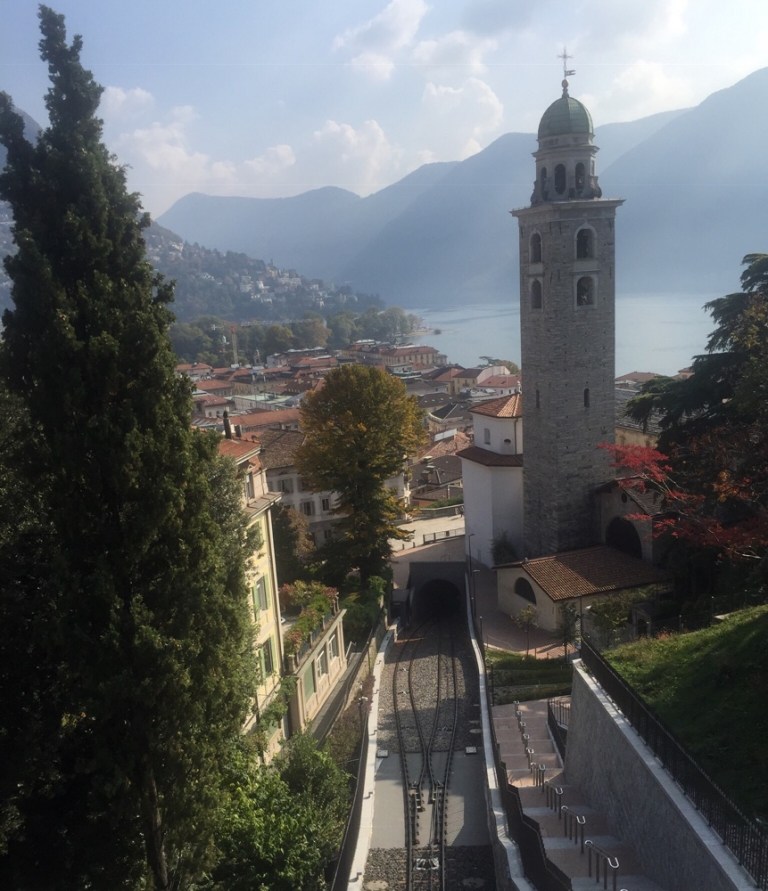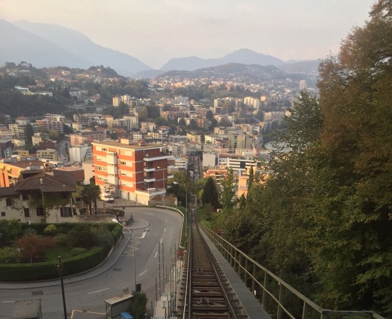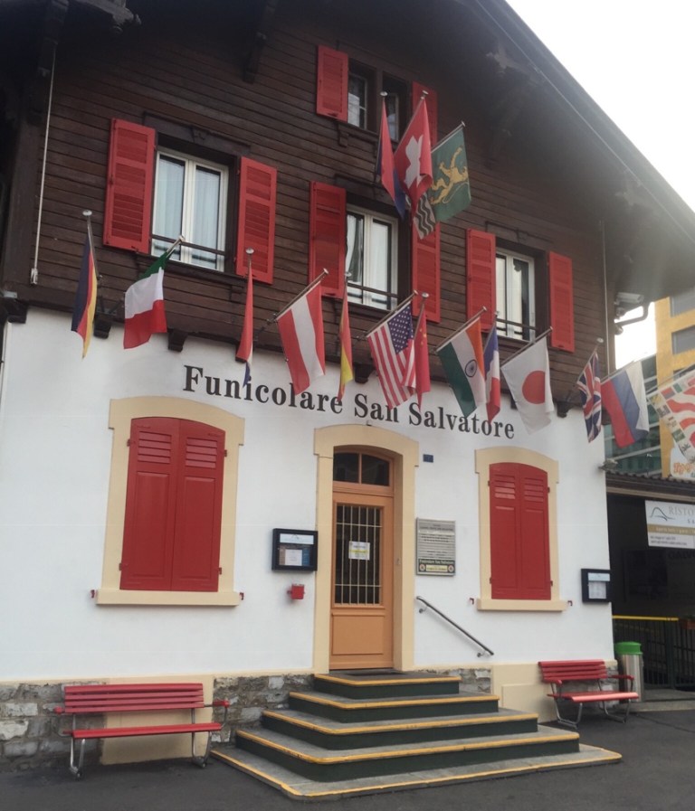 zur Station der Standseilbahn (https://www.ticino.ch/de/commons/details/Standseilbahn-Monte-San-Salvatore/994.html) auf den Monte San Salvatore.
