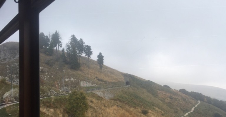 Ach wie schön wäre es, wenn das Wetter ein wenig schöner wäre. Ich würde gerne hier aussteigen und gemütlich zum Gipfel des Monte Generoso wandern. Leider ist aber nur kurz eine dunstige Aussicht möglich, denn wir tauchen immer mehr in den Nebel ein.