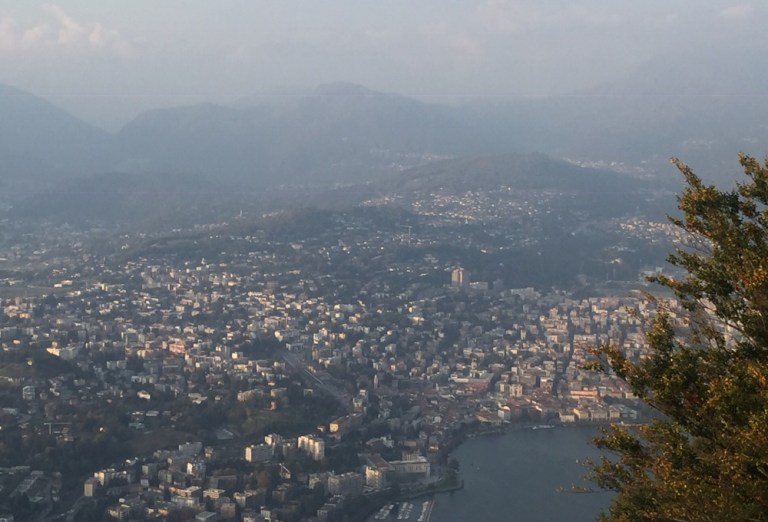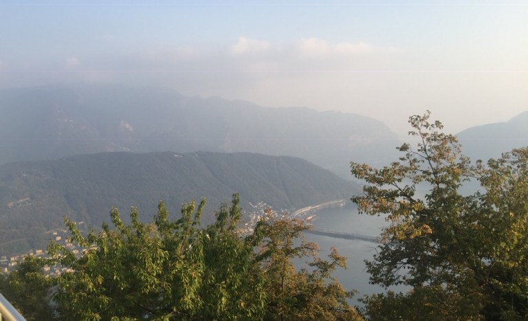 Hier oben (http://www.montesansalvatore.ch/de/) können wir endlich eine etwas besser Aussicht auf den Luganersee, den Damm von Melide, die Stadt und umliegende Berge geniessen.