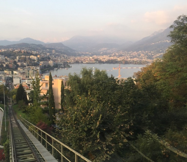 Es dünkt uns, der Zug bummle recht gemütlich und doch erreichen wir Bellinzona und knappe 30 Minuten später um 11.45, 3 Minuten vorzeitig, unsere Umsteigebahnhof Lugano (https://de.m.wikipedia.org/wiki/Lugano).