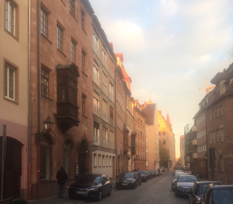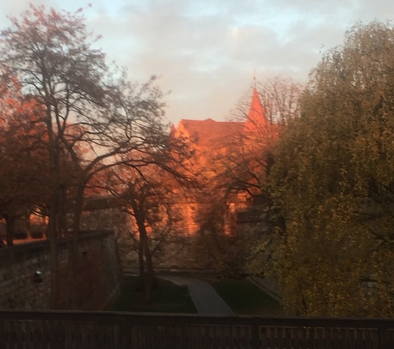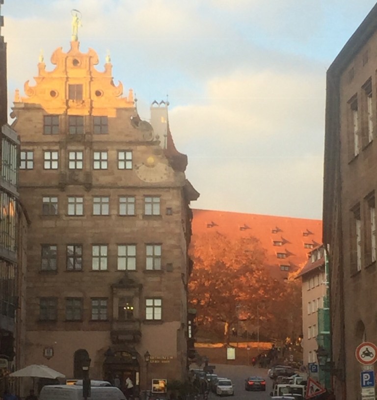 Ein wolkenlos blasser Spätherbsttag erwartet mich. Trotzdem habe ich lange ausgeschlafen. Nach dem Frühstück im 5. Obergeschoss dieses Boutiquehotels (https://www.gideonhotels.de/de/index.html) mit Ausblick über die Stadt, schreibe ich noch ein wenig Tagebuch, bevor ich mich zu Rundgängen durch die Stadt Nürnberg (https://de.m.wikipedia.org/wiki/Nürnberg) aufmache.