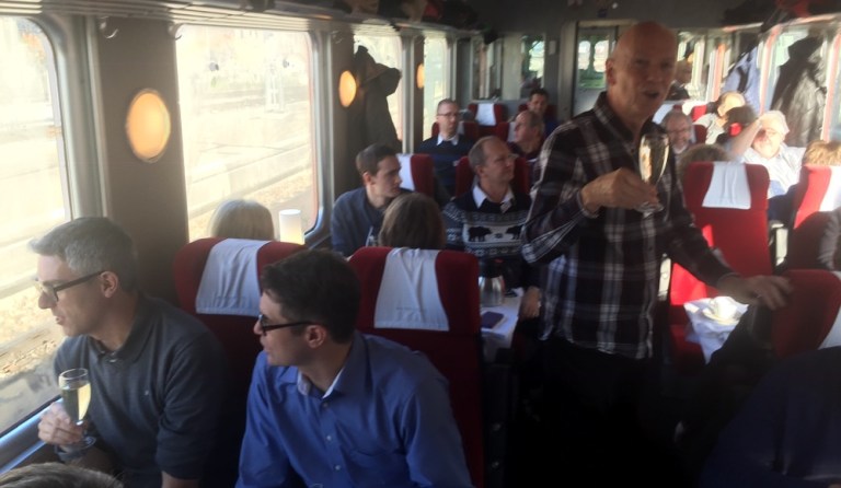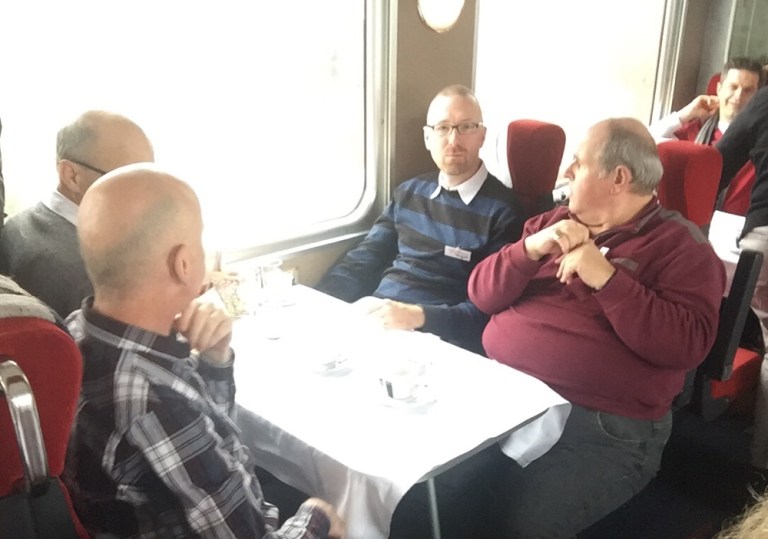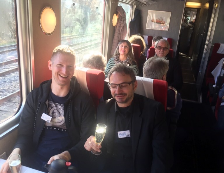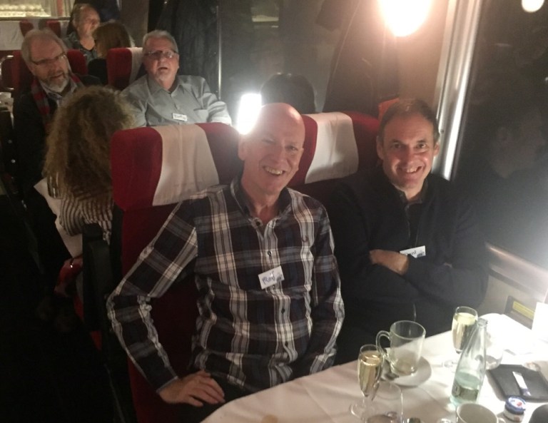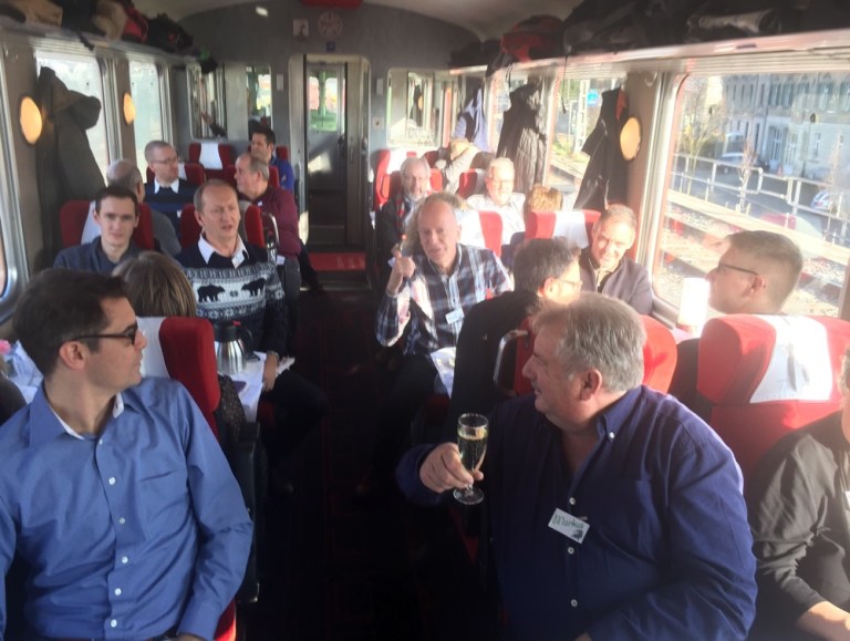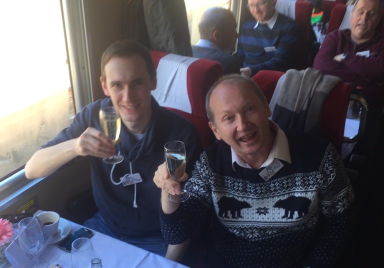 Was für eine Überraschung: Auf Gleis 12, im knapp 80-jährigen Triebfahrzeug von 1939, dem Churchill Doppelpfeil hat Rolf Plätze für uns reserviert.