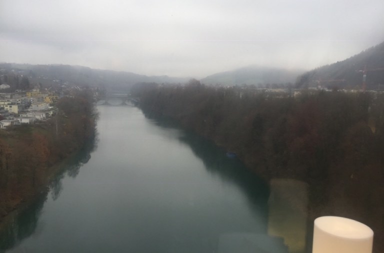 Wir fahren nämlich über die einen knappen halben Kilometer lange, 50 m hohe, unter Kulturgutschutz und Denkmalschutz stehende, eiserne Fachwerkbrücke von Eglisau (https://de.m.wikipedia.org/wiki/Eisenbahnbrücke_Eglisau).