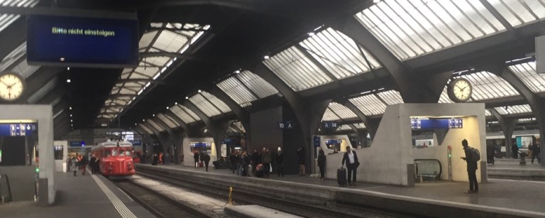 Rolf, mein Freund und ehemaliger Kollege, hat zu seiner Vor-Geburtstagsfeier eingeladen. Obwohl heute wichtige Eisenbahner nicht arbeiten, sondern zusammen mit Rolf feiern wollen, erreiche ich den nebligen Hauptbahnhof Zürich störungsfrei!