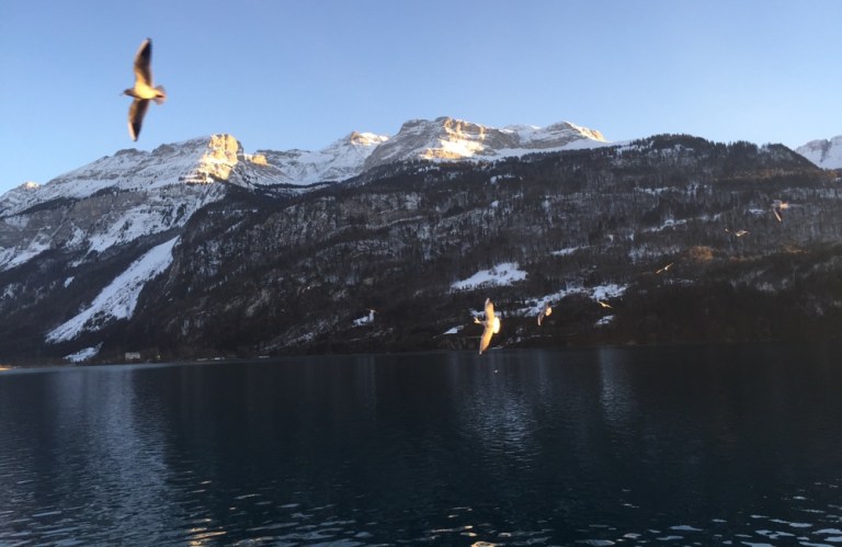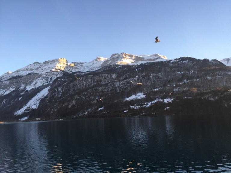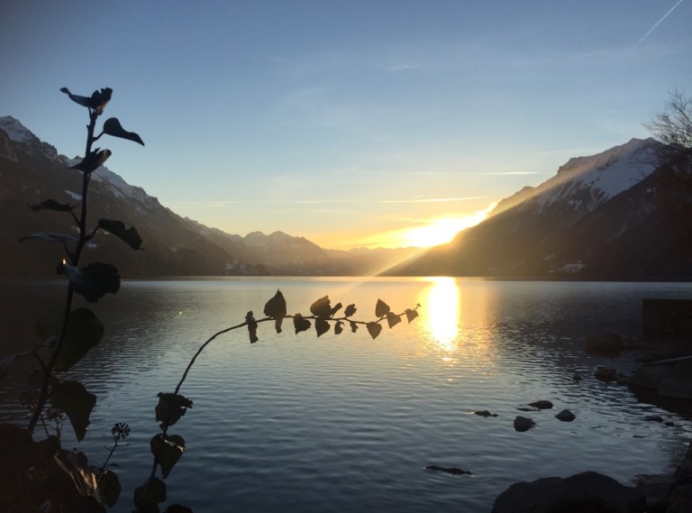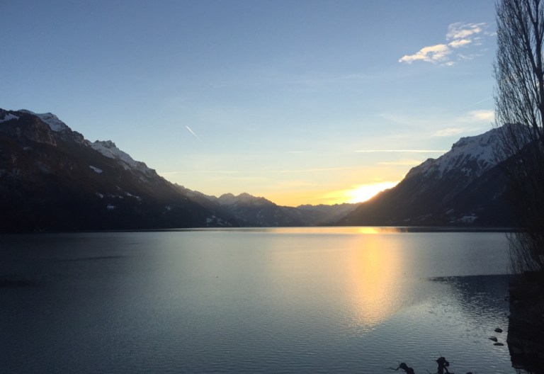 Wolkenloses Spätwinterwetter am Brienzersee. Gemütlicher Spaziergang über den Quai heimwärts.