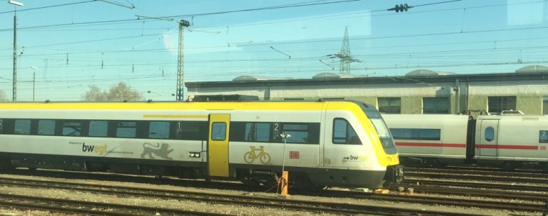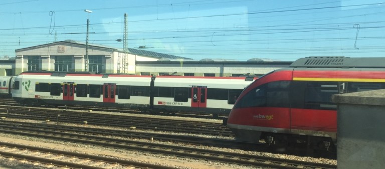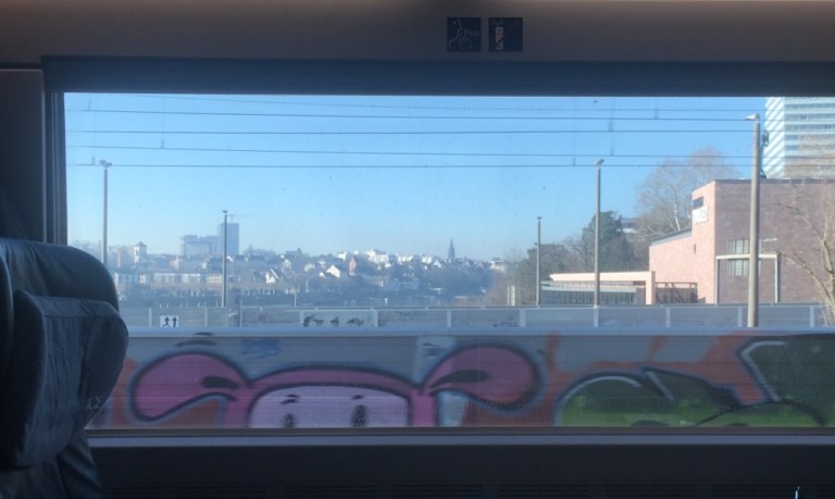 Um 11 in Basel, umsteigen in einen ICE. Kurzum queren wir den Rhein, erhaschen ein letzten Blick auf Basel.