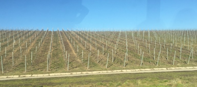 Die Reise entlang von Weinbergen und Spargelfeldern ist toll, erst recht weil im Hintergrund noch Schneeberger sind.