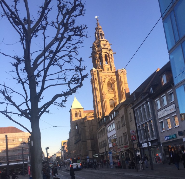 Kurz vor 13 Uhr in Karlsruhe. Genügend Zeit für einen Spaziergang durch den Bahnhof und auf den Vorplatz.