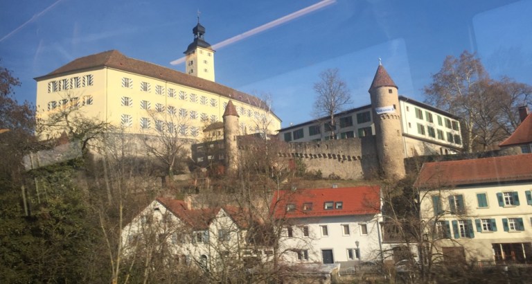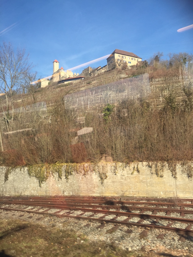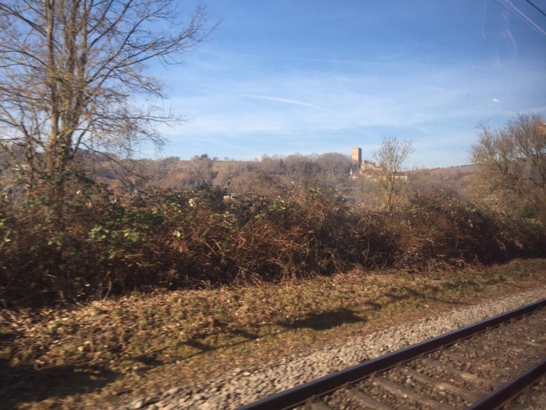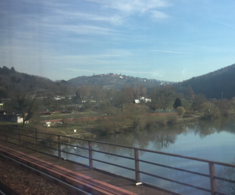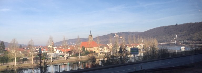 Umsteigen in Mosbach, fotografieren ist jetzt fast unmöglich, die Fenster der S-Bahn sind schmutzig und fast blind. Weiter bis Heidelberg. Das Tal des Neckar strahlt an diesem Vorfrühlingssonntag ein wunderbare Erhabenheit und Stille aus.