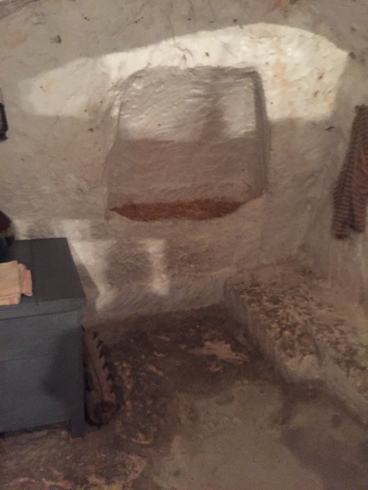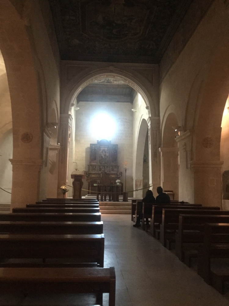Die Kirche san Pietro. Nicht weit dahinter befinden sich die historischen „Casa Grotta di Vico Solitario„. Es schaut fast so aus wie in einer Alphätte im Berner Oberland: