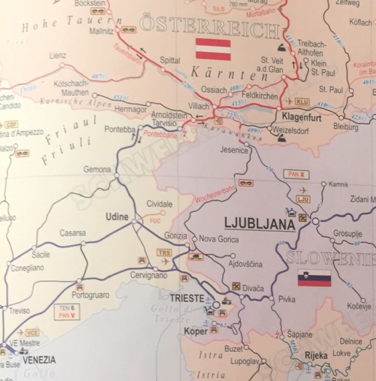 In Udine ist es schon am Dämmern. Auch hier hängen die Wolken sehr tief. Die Pontebbana, zu deutsch Pontafelbahn von hier nach Treviso an der italienisch-österischen Grenze musste in den letzten 20 Jahre wegen Steinschlagproblemen komplett neu gebaut werden. Knapp die Hälfte der 90 Kilometer verlaufen seither leider in Tunneln, jammerschade!