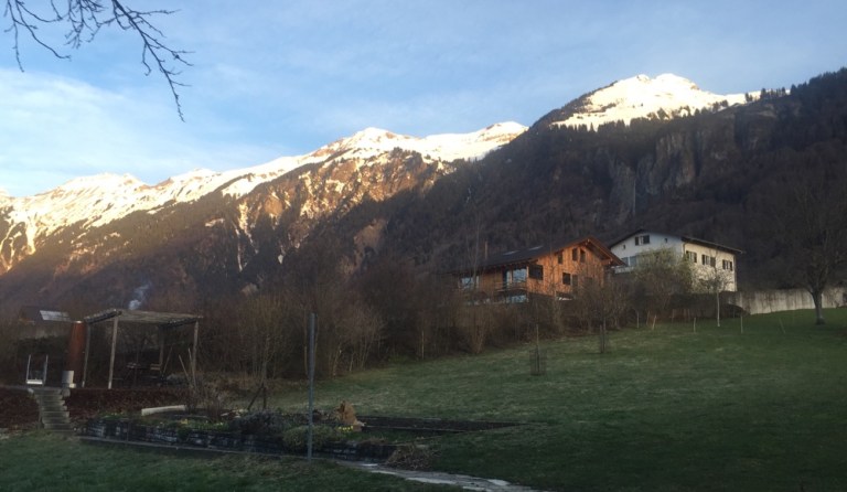 Den Morgenhimmel zieren Schlieren, ein typisches Schlechtwetterzeichen. Henusode, ich fahre bald gen Osten. 7.02 ab Brienz, in Oberried weidet oberhalb des Bahnhofs noch immer ein Rudel Gämsen. Es wird also nochmals schneien. Umsteigen in Interlaken Ost. Um 7.50 in Spiez, 15 Minuten Zeit für Kaffee und/oder obligatorische Platzreservation. Entscheide mich für die Sitzplatzreservationen in den 3 heutigen Zügen und habe Glück, kriege noch 3 Mal einen Fensterplatz.
