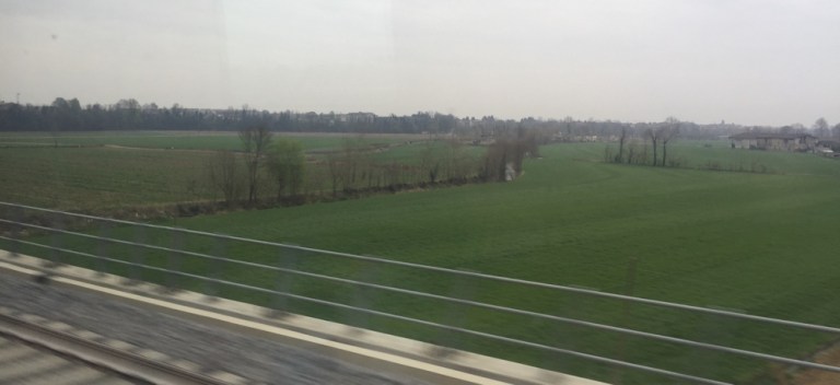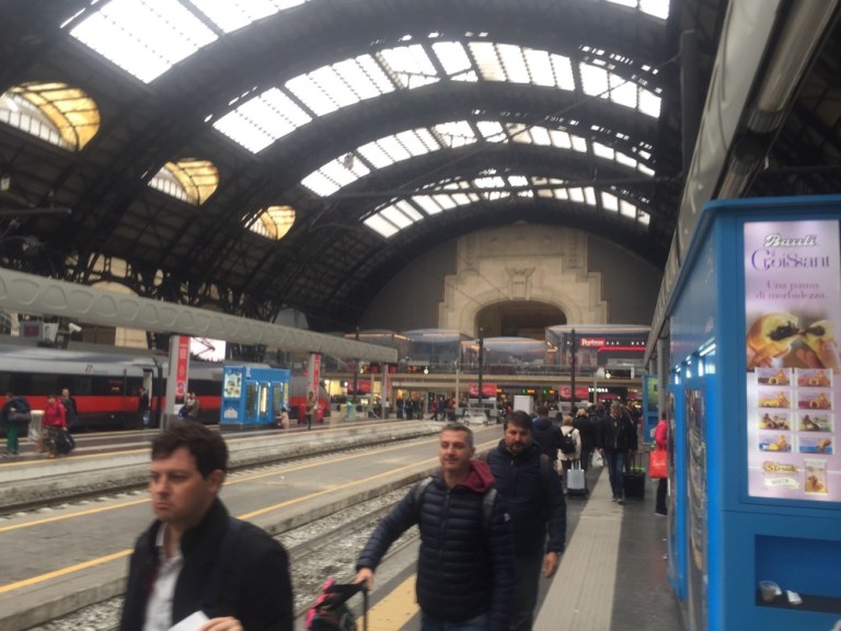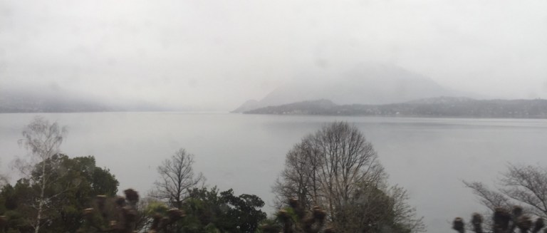 Am Langensee beginnt es zu nieseln. Die Berge im Norden, gegen die Schweiz hin sind allesamt von Wolken verhangen. 11.10 Uhr, Ankunft in Milano Centrale.
