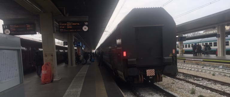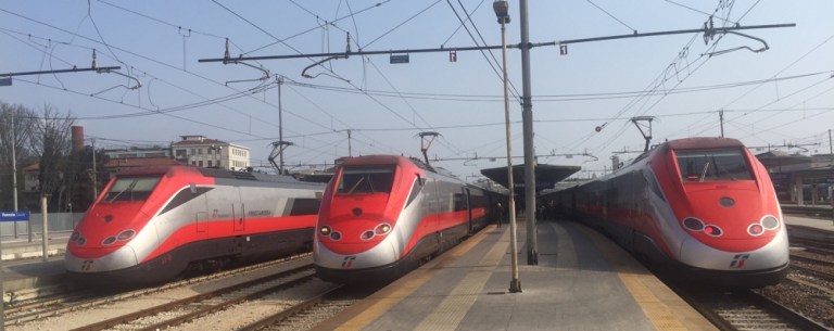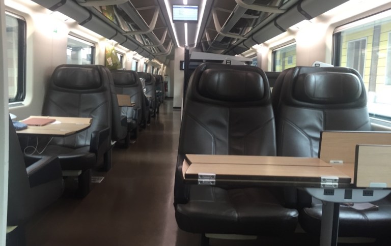Gemütlicher Spaziergang zu meinem Frecciarossa. Die fetten+dicken Ledersessel mit den fixen Armlehnen haben mir noch nie gefallen. Wenigstens sind sie bequem.