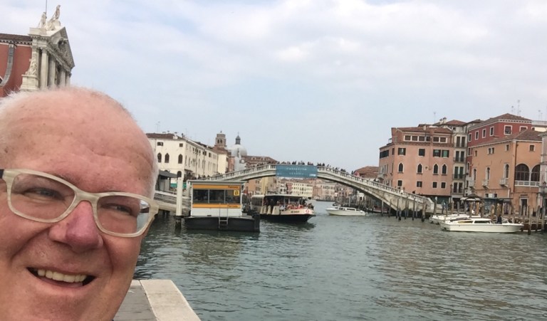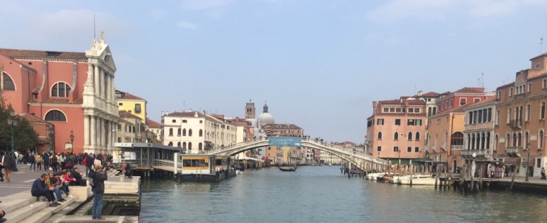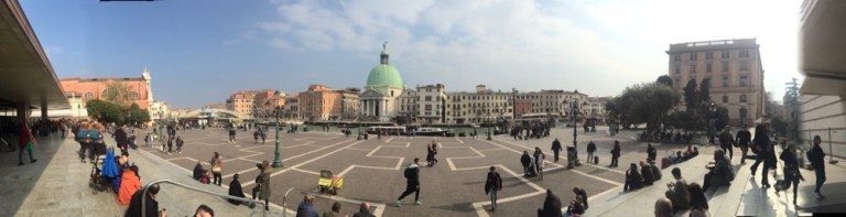 Pünktlich 14.10 in Venedig, Bahnhofs- und Eisenbahnfotos, Spaziergang über den Bahnhofplatz. Am Kanal setze ich mich auf einen steinernen Poller und geniesse die Aussicht, sowie die Stimmung.