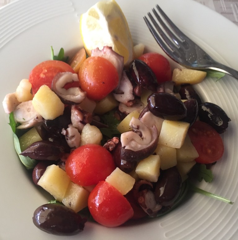 Kurzerhand betrete ich die Trattoria Povoledo. Ich bestelle einen gemischten Gemüsesalat mit gekochtem Tintenfisch, Wasser und einen Viertel Rotwein. Hhmmm, herrlich mundet es mir, während ich den Schiffsverkehr auf dem grossen Kanal beobachte.