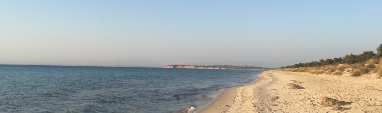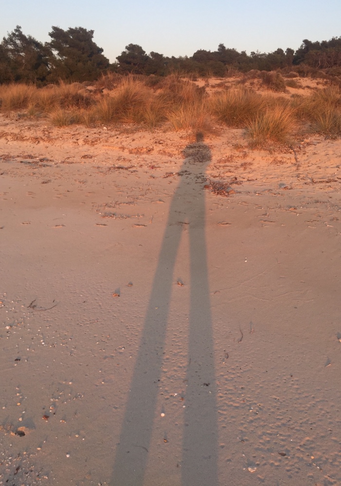 Yvonne und ich laufen zum Sandstrand und laufen auf ebendiesem, ganz knapp an der Wasserlinie gen Norden, Richtung Kanal von Nea Potidea.
