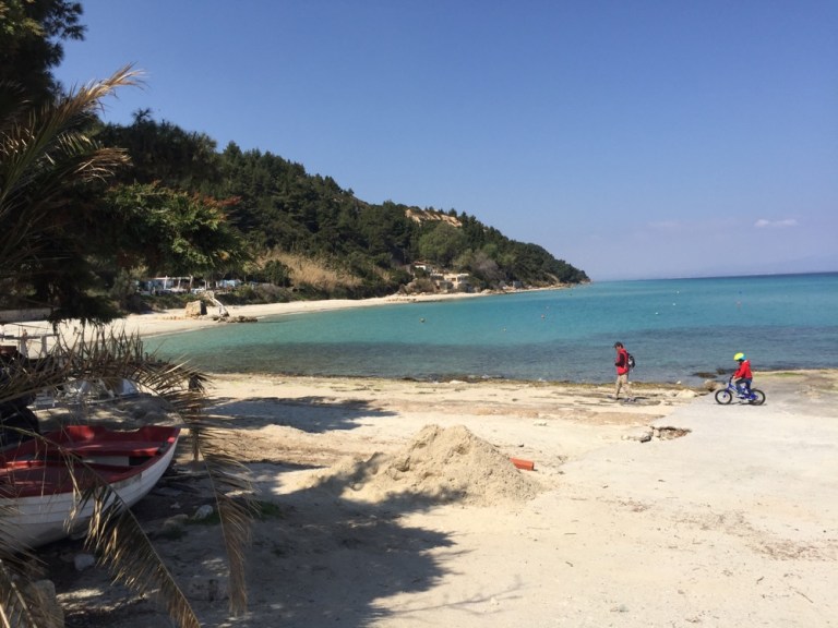 Gesagt getan, Michali will mir aber bevor wie heimgehen zuerst noch kurz den neugestalteten Strand von Afitos zeigen.