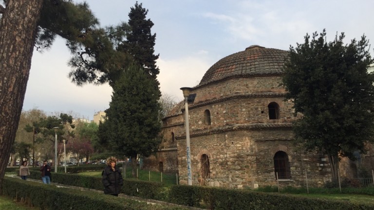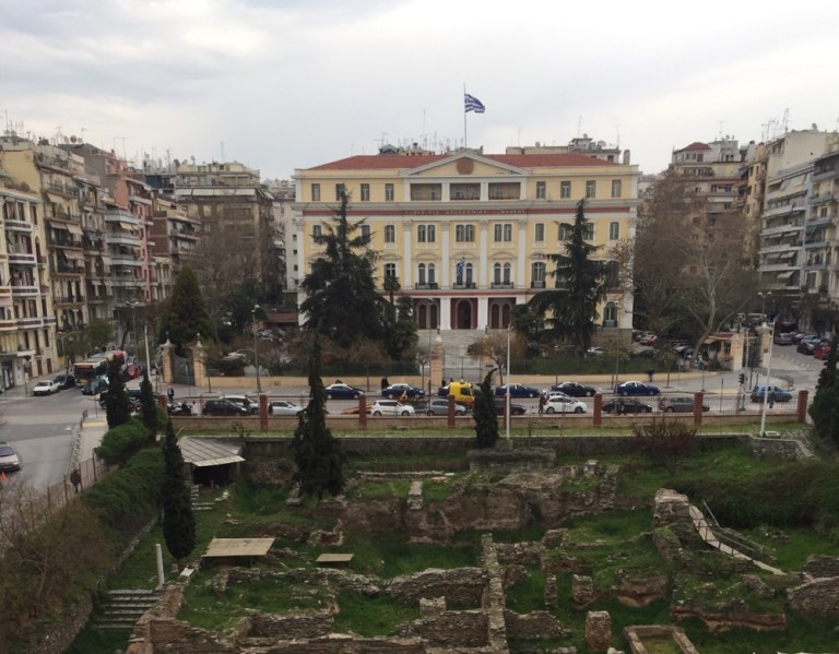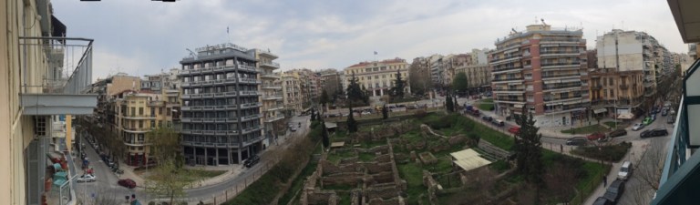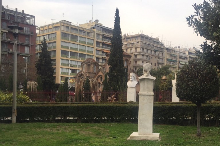Mit Taxi geht es zurück ins Stadtzentrum zum grossen Aristoteles Platz.
