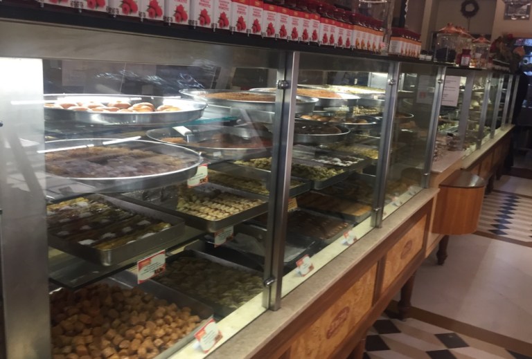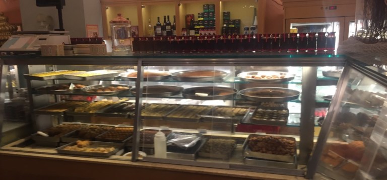 Wir laufen kurzum zurück Richtung Hotel. Michali will mir, bevor wir ins Hotel zum Relaxen gehen, unbedingt noch eine gute Konditorei zeigen. Chatzis, wir treten ein, eine riesige Auswahl an Torten, Süssspeisen, Gutzi und anderes mehr wird sichtbar. nicht viele Leute da, es riecht himmlisch gut. Wir setzen uns hin und werden sofort bedient. Ich kann mich nicht entscheiden, muss durchden Laden laufen unter den Hunderten von süssen Dingern dasjenige auslesen, das ich jetzt essen will. Ungriechisch schnell geht die Bestellung, im nächsten Atemzug steht der gewünschte griechische Kaffee schon auf dem Tisch. Wir schlemmen!