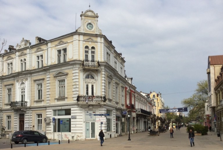 13.40 in Russe, der rechtsufrigen Donaustadt an der Grenze zu Rumänien. Ich wollte eigentlich in die Innenstadt laufen, eventuell irgendwo etwas essen. Das eine Knie schmerzt immer noch allzu fest.