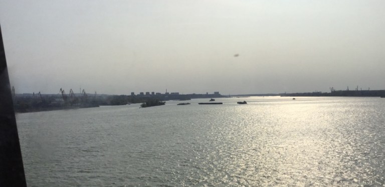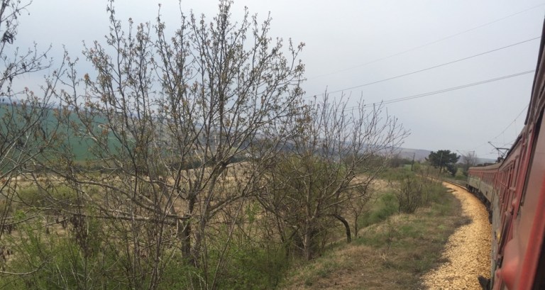Unser Desiro schleicht mit wechselnden Geschwindigkeiten zwischen 10 und 40 Kilometern je Stunde nach Russe, die Gleislage ist miserabel.