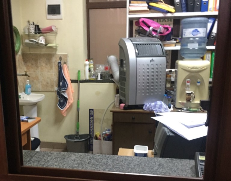 Dem jungen Angestellten tut die Attacke seines Chefs leid, aber er kann sich nicht wehren, er lächelt und bittet mich mit Gesten das Büro zu verlassen. Schade aber okay!