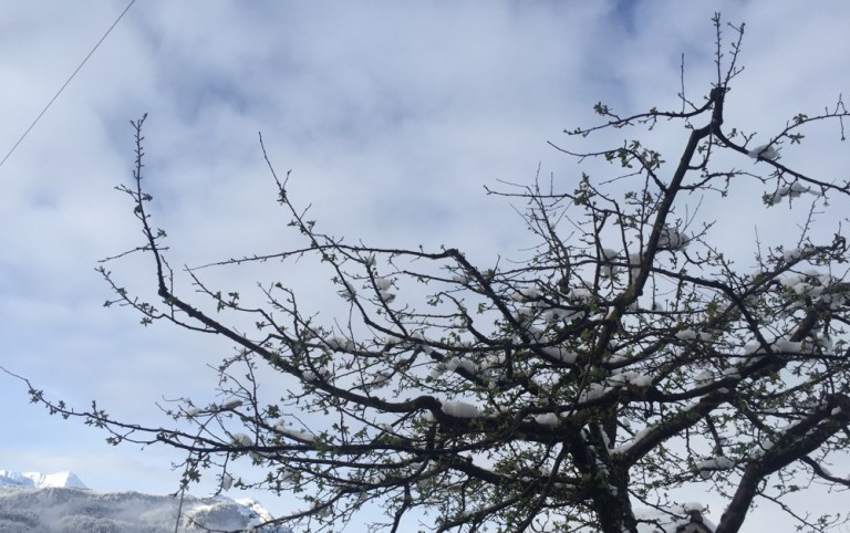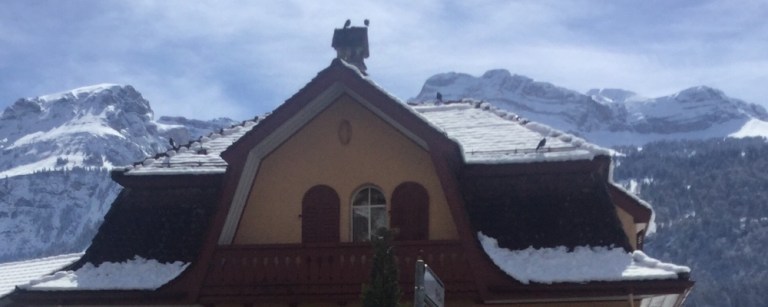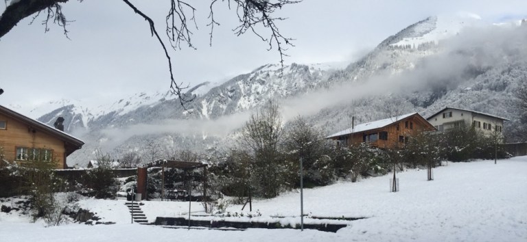 Die Aprilsonne scheint schon früh am matt-blauen Himmel. Letzte Nebelreste am Brienzergrat lösen sich alsbald auf. Die Temperaturen, die in der Nacht wohl unter die Nullgradgrenze gesunken sind, steigen jetzt rasch an. Noch liegt schwerer Schnee auf den Büschen, Pflanzen und Bäumen. Bald ist draussen aber überallhin leises, dann immer kräftiger werdendes Gurgeln und Rauschen zu vernehmen. Bäche fliessen, der Schnee schmilzt!