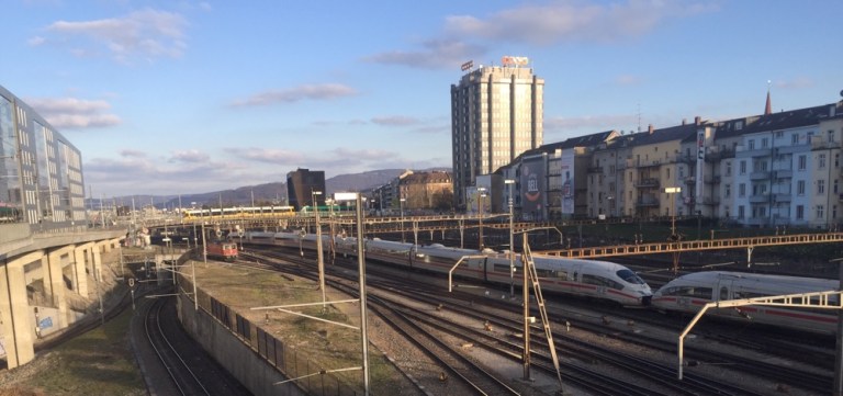 Im 16er Drämmli rolle ich vor 23 Uhr durch die Stadt zum badischen Bahnhof.