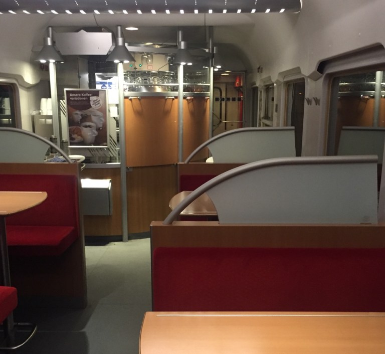 23.23 Uhr nehme ich im IC 208 meinen Sitzplatz ein, Interrail und online Sitzplatzreservation sei dank! Auf den Schlummertrunk muss ich allerdings verzichten, die Bar ist schon zu.