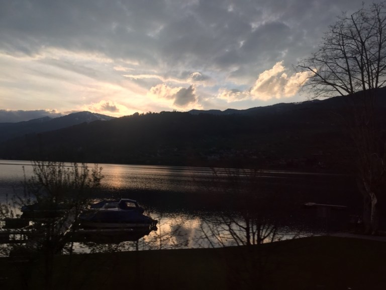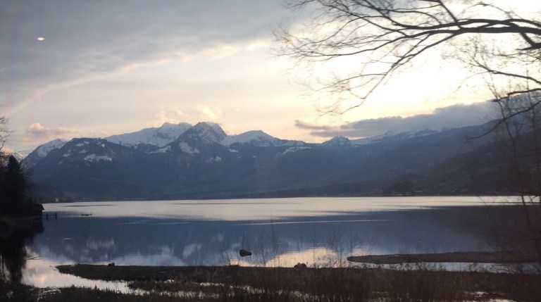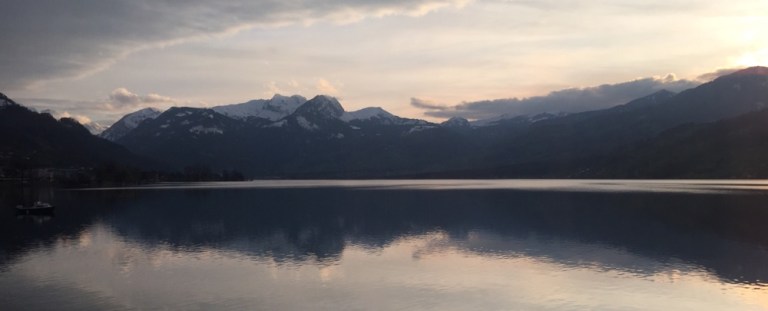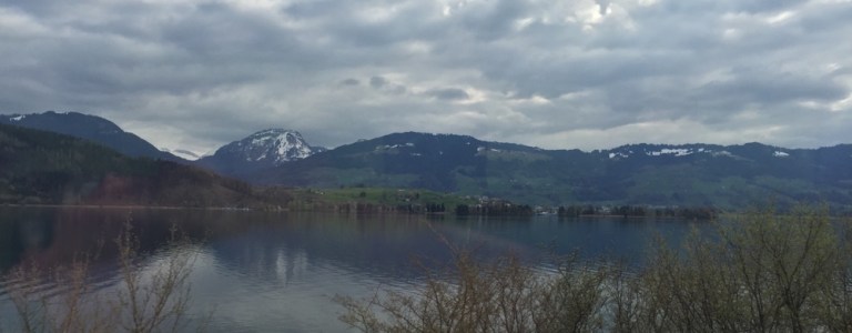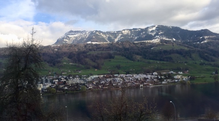 Küssnacht am Rigi; im Hintergrund steht majestätisch die Königin der Berge, die Rigi!