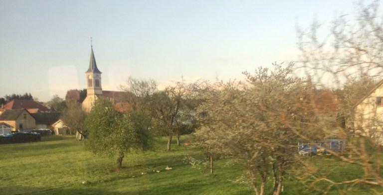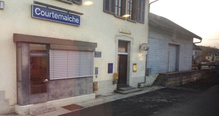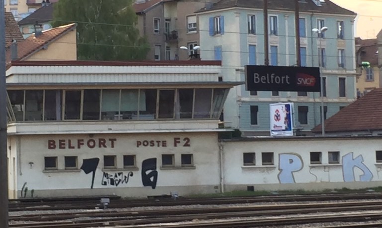 Belfort muss ich in einen unbequemen, allzu eng möblierten SNCF Zug umsteigen. Buche ein Hotelzimmer in einem Best Western gleich vis-a-vis vom Bahnhof.