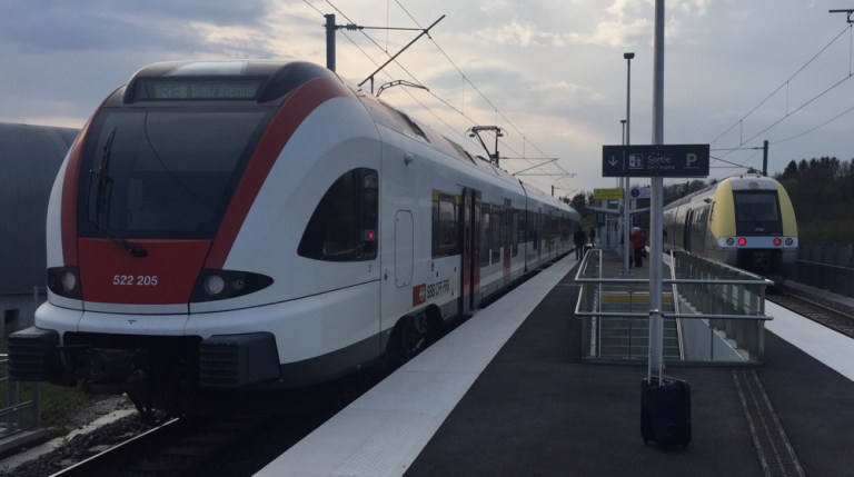 Gemeinsam geniessen wir einen Kaffee und tauschen Nachrichten aus. Kurz nach 17:00 Uhr fallen die ersten Regentropfen. 17:19 Uhr im Regio Express RE nach Moutier – Delémont –