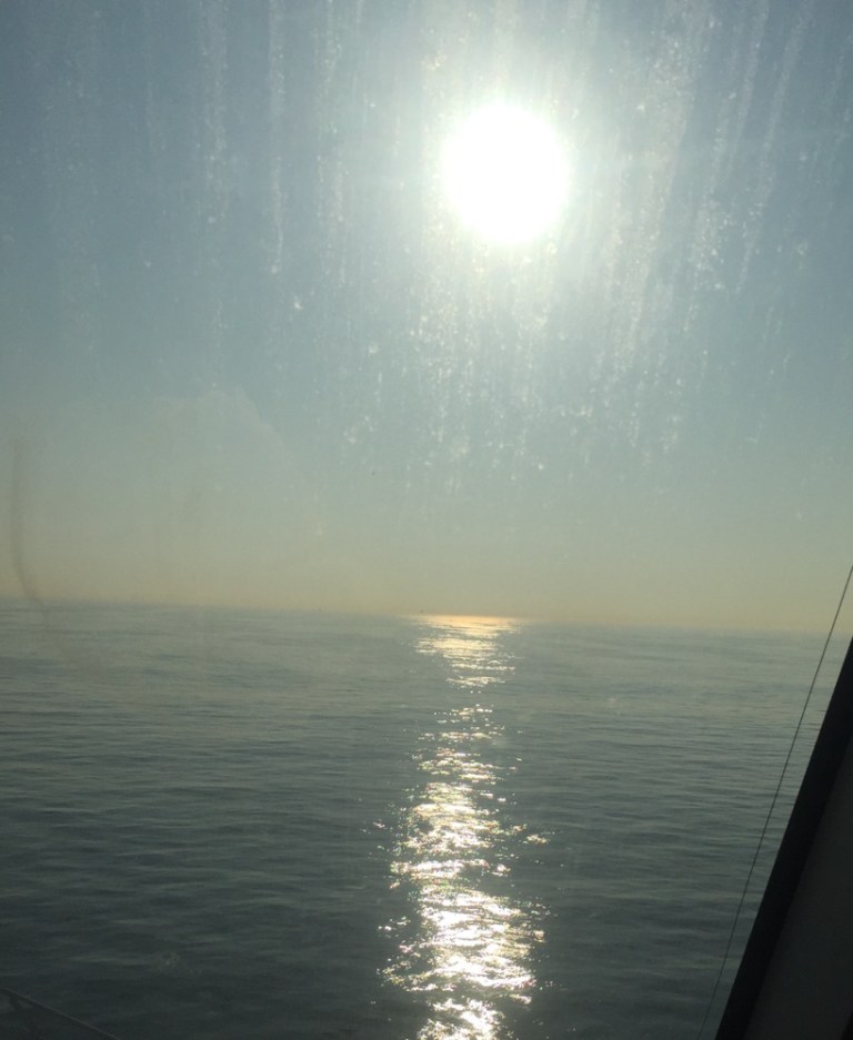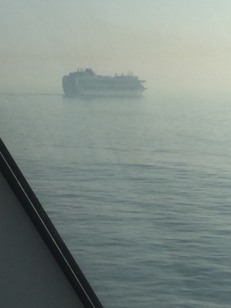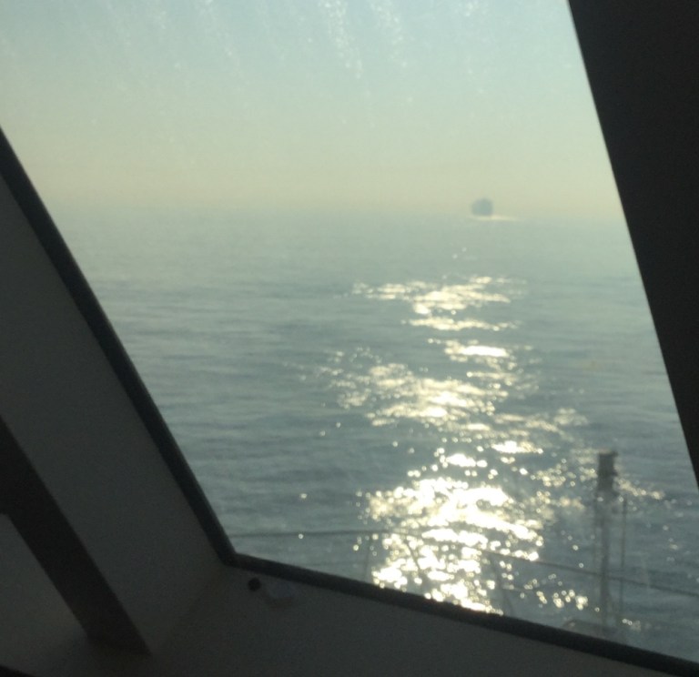 Geniesse die Abendsonne in der Frontbar auf Deck 11. Dichter Schiffsverkehr. Bald fallen mir die Äuglein zu. Also gehe ich zu einem Vorabendnickerchen in meine Kabine