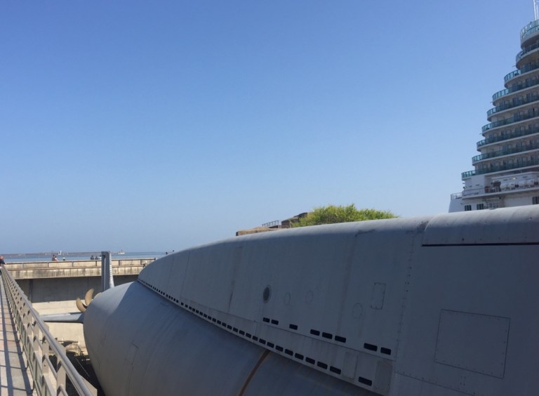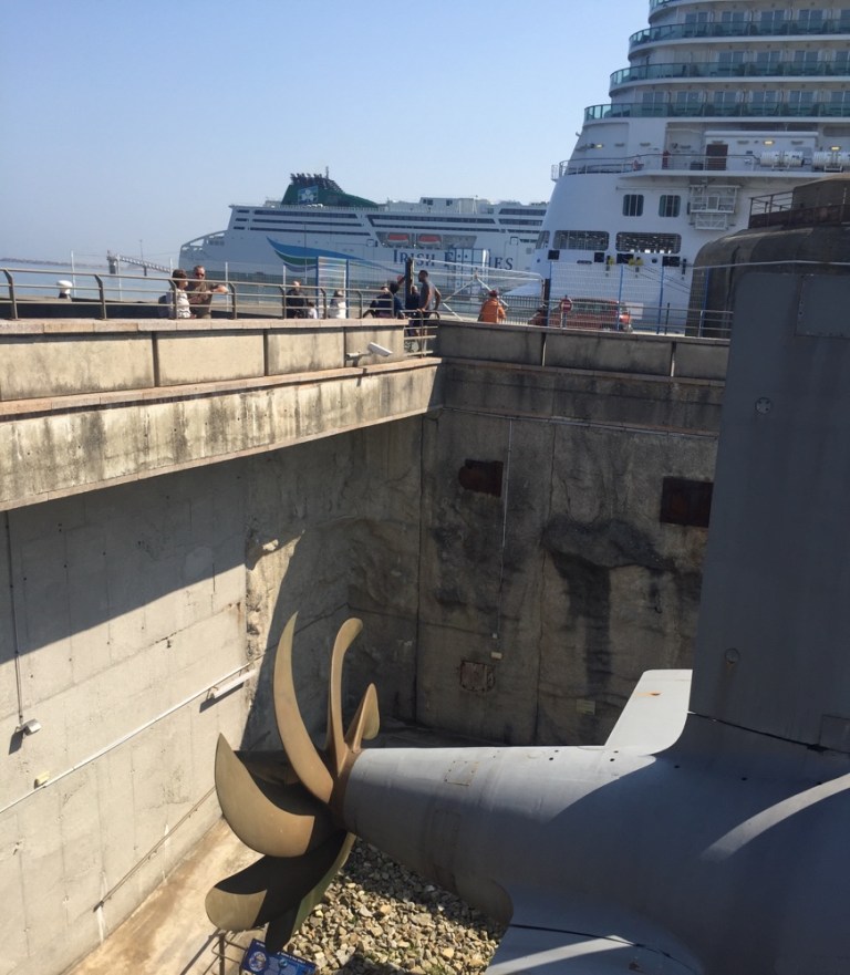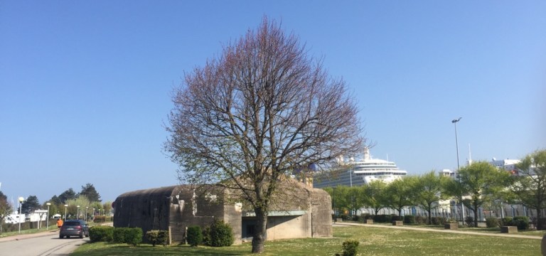 bis zum vordersten Bunker und dem ausgestellten, riesigen U-Bott ‚La Redoute‘.