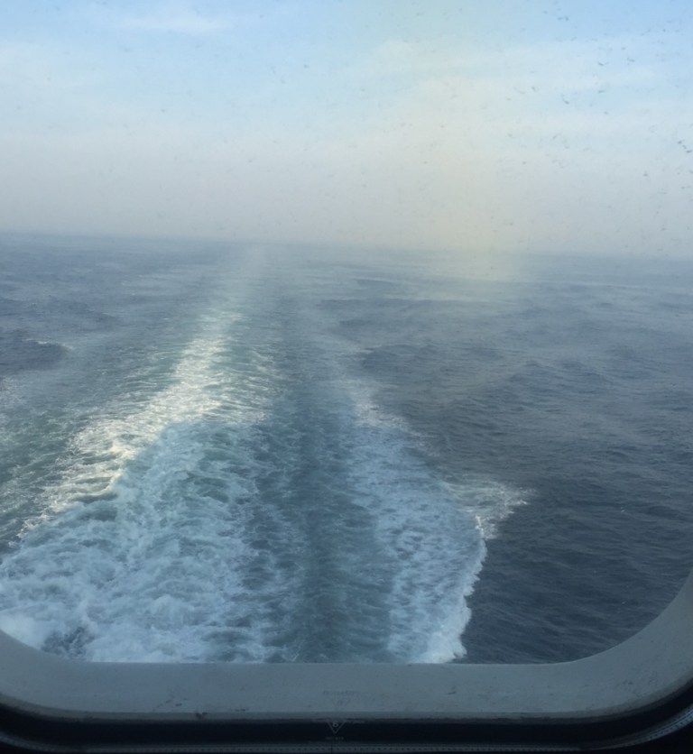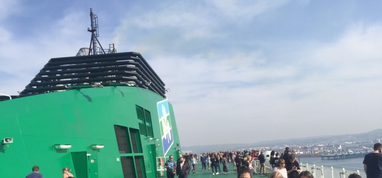 Das Schiff fährt allerdings erst um 17 Uhr und erreicht Dublin morgen Montag um 10.30 Uhr, lokaler Zeitrechnung. Ich beschliesse dennoch grad am Hafen zu bleiben, physische und psychische Batterien aufzuladen, Tagebuch zu schreiben und möglichst früh aufs Schiff zu gehen.
