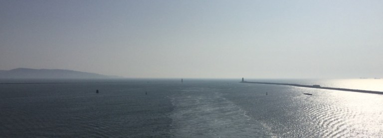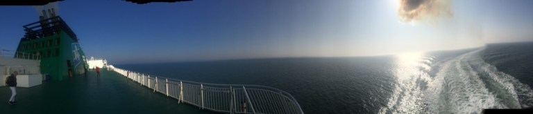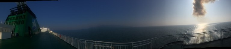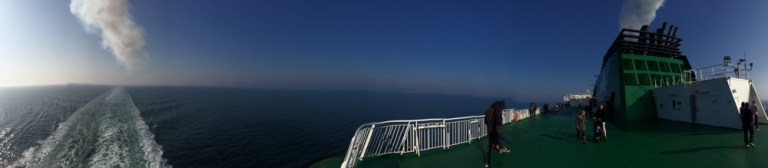 Verbringe die letzte Stunde vor der Ankunft auf dem Sonnendeck, lasse mich an windgeschütztem Ort ein wenig besonnen.