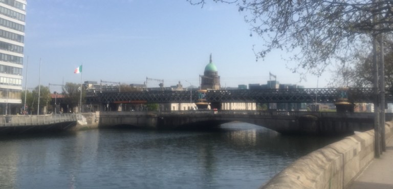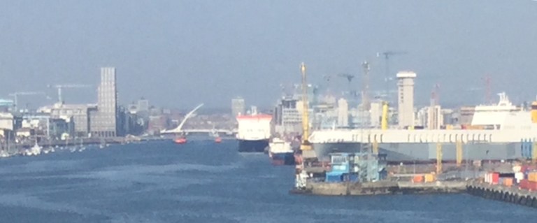 Es ist kalt in Dublin und es bläst ein eisiger Wind, aber immerhin scheint die Sonne. Die vor Jahren schon angekündigte Fährhafenbahn bzw Dockland Tramways ist noch immer nicht gebaut.