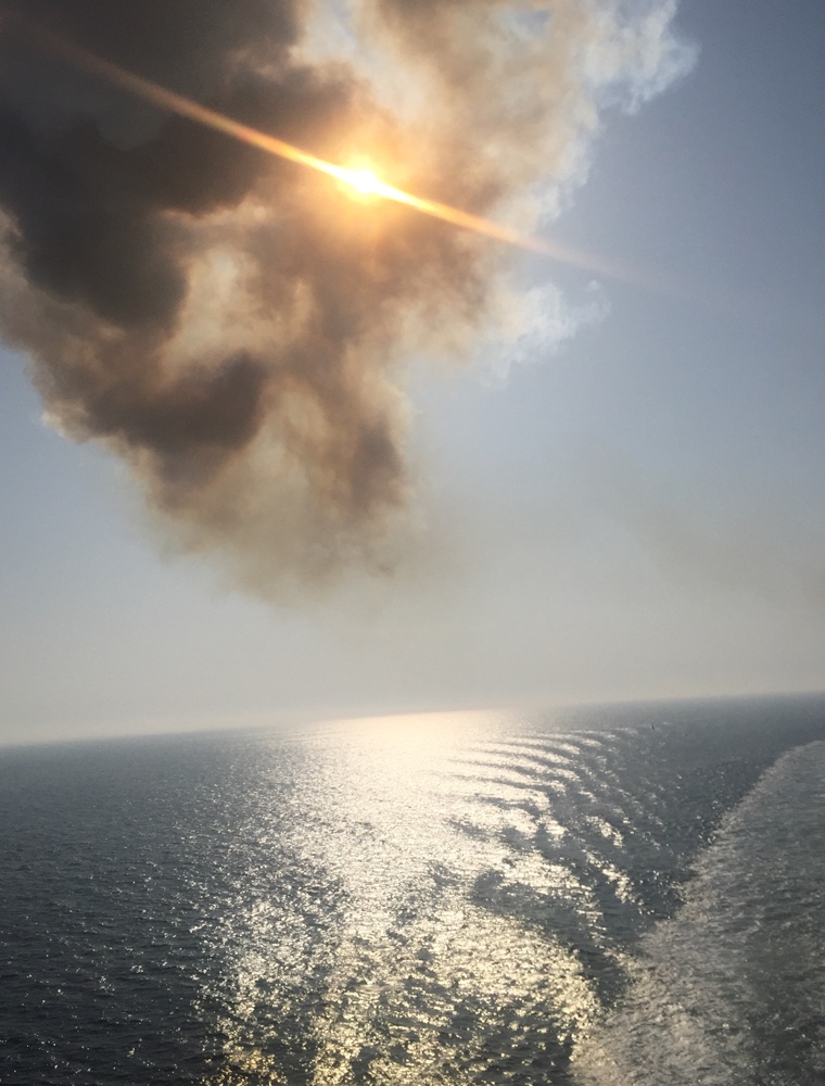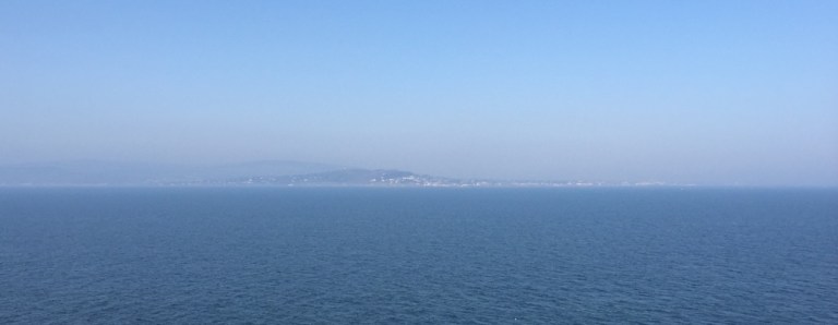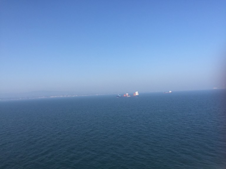 Habe recht gut geschlafen, trotz ewigem auf und ab, rechts und links. Wiederum ist es recht diesig, es ist kaum Land auszumachen, obwohl wir keine 5 Kilometer von der Küste entfernt sind.