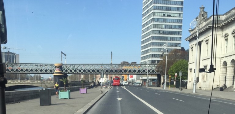 Zum Glück gibt es einen Bus der bald einmal zur Busstation neben dem Conolly Bahnhof und weiter ins Stadtzentrum fährt. Ich fahre bis ins Zentrum, da ich noch kein Zimmer habe und gestern die günstigeren all der teuren Hotel im Stadtzentrum lagen.