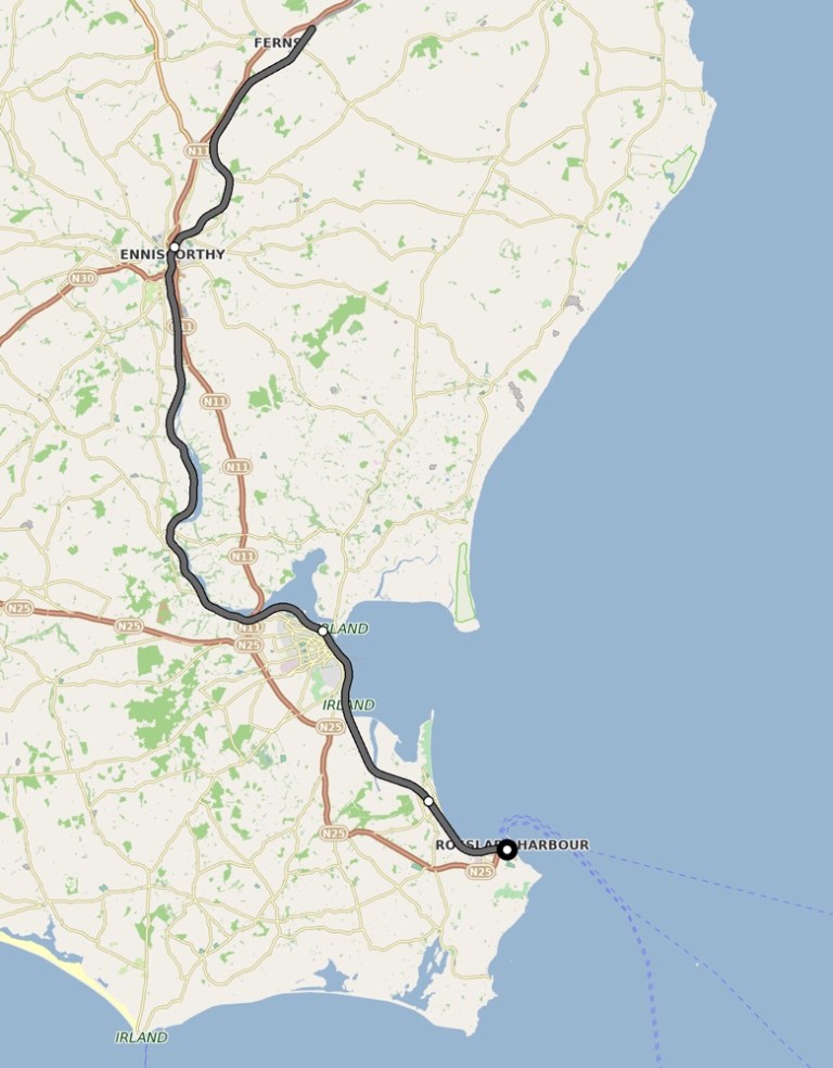 Auf der Fahrt nach Rosslare sitze ich links, mit teilweisem Blick aufs Meer. Auf der Heimreise sitze ich wiederum in Fahrtrichtung links mit Blick ins Landesinnere. Nie wird es mir auch nur ein paar Sekunden langweilig, immer gibt’s es etwas Interessantes zu entdecken.