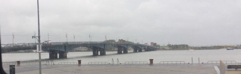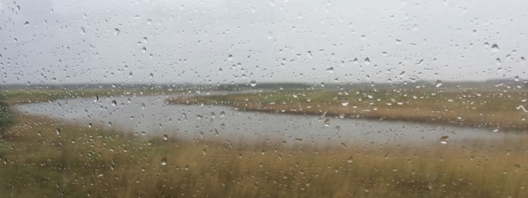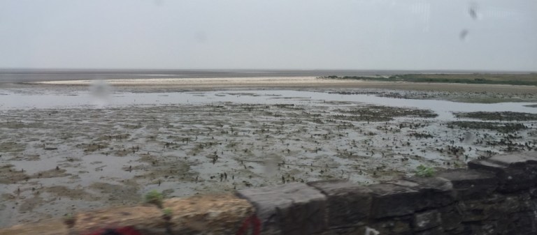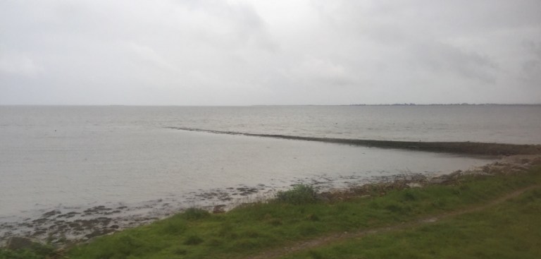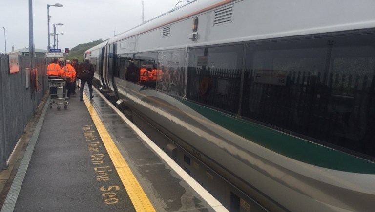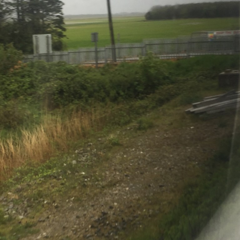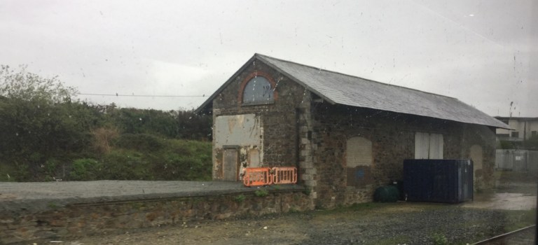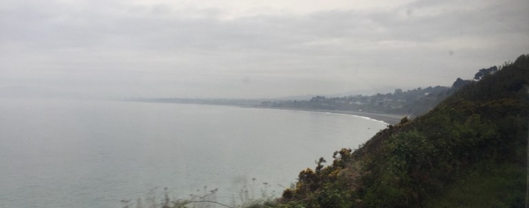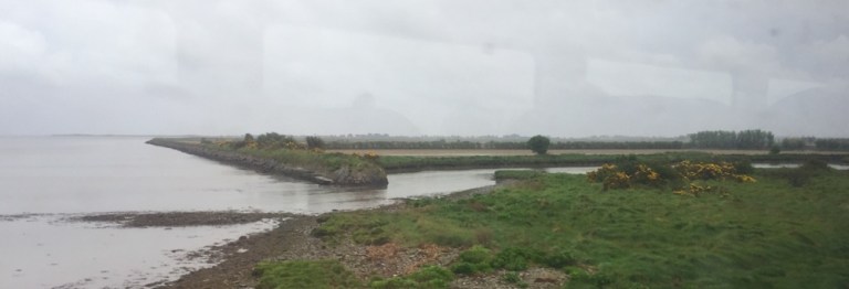 Kurz vor Ende der Hinfahrt, in Rosslare Strand beginnt es zu nieseln. Das trübt die Sicht doch beträchtlich, dabei wäre die Strecke, mitten durchs Dorf und am Strand entlang sehr interessant. Der Zug schleicht hier nur 5 Meilen langsam dahin.