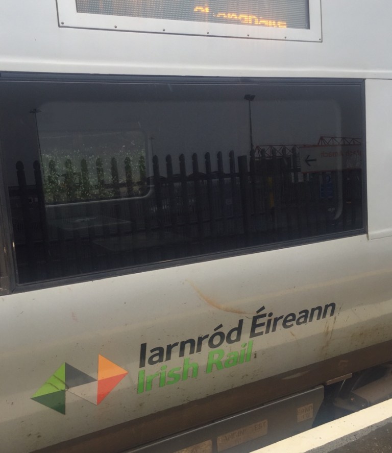 Der Rest der Strecke ist nicht elektrifiziert. Die Fahrpläne zwischen Vorortszügen und Intercitys sind offensichtlich nicht abgestimmt, Überholgleise fehlen. Deshalb fahren bzw schleichen wir schon einen halben Kilometer nach der Abfahrt in Dublin im Blockabstand hinter einer S-Bahn her, mässen immer wieder mal anhalten, grünes Licht abwarten und erhalten doch keine Verspätung oder allerhöchstens 3 Minuten. Für die Gesamtstrecke benötigen wir gemäss Fahrplan 3 Stunden.