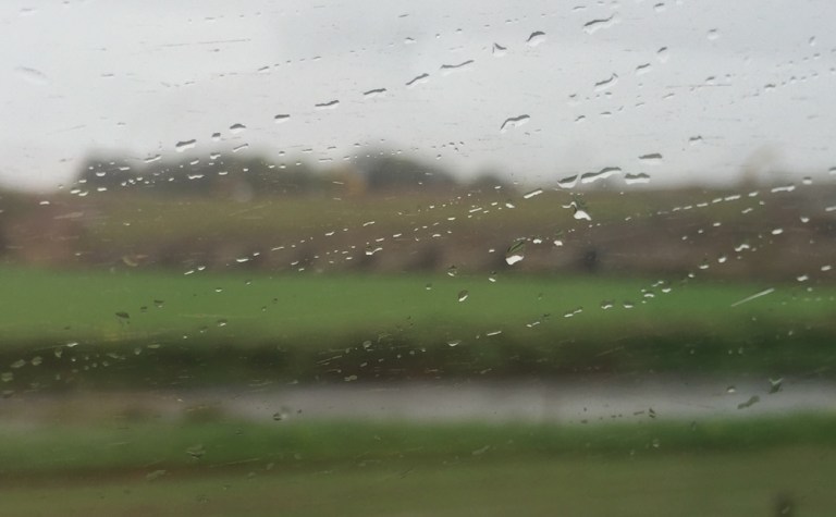 Die Wolken fliegen tief heute Morgen, allerdings scheint trotzdem die Sonne. Regentropfen sind in der Luft, erreichen aber den Boden nicht, noch nicht.