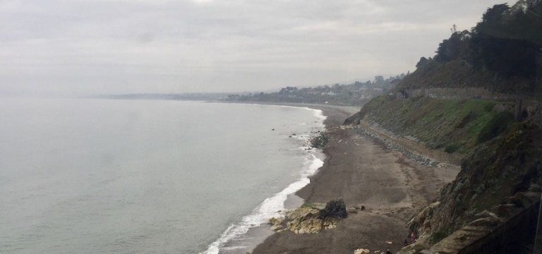 In der Tat sehr schöne Reise, teils auf Meereshöhe, hinter einer Schutzmauer die den Zug vor der brandenden Gischt schützen soll, teils aber auch in den Felswänden auf der gleichen Höhe wie die hier nistenden Albatrosse.