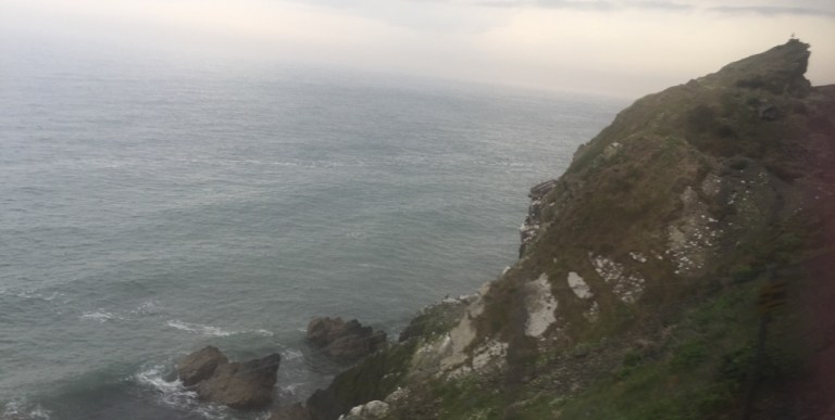 Beidseits den Gleisen weiden Schafe, Rinder, milchkühe mit schweren Eutern und Pferde, hin und wieder auch alle zusammen. Einmal sehe ich einen Hasen, mehrmals diverse Hühnervögel. In den Klippen nisten Möven, Albatrosse und Scharben.