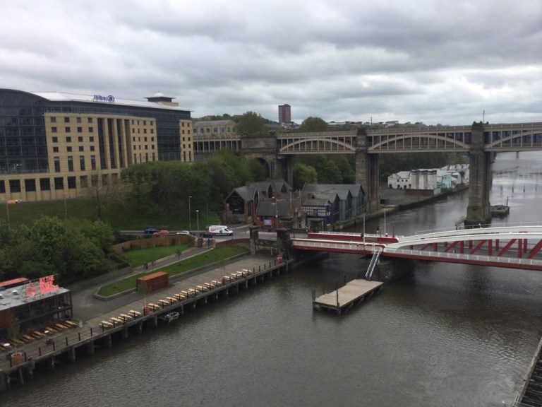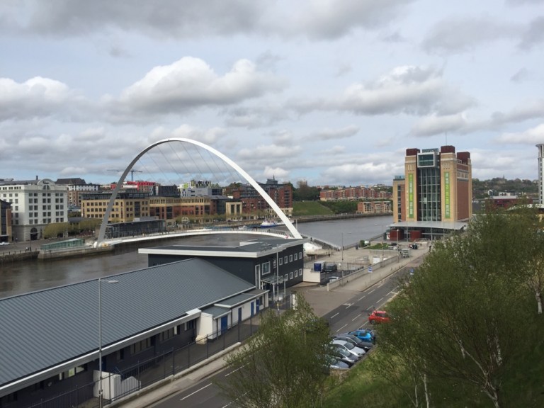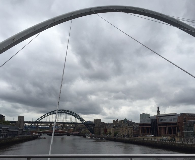 Auch die Bauwerke auf der anderen Flussseite in Gateshead haben mich schon lange in ihren Bann gezogen. So überquere ich denn den Bach mit knurrendem Bauch auf der Milleniumbrücke.
